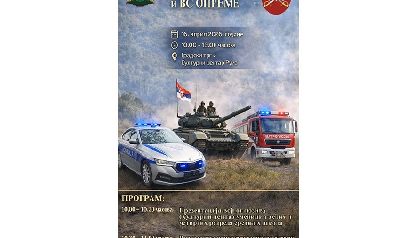 Министарство одбране и Војска Србије организују у Руми приказ наоружања и војне опреме који ће бити одржан у четвртак, 16. априла, на Градском тргу са…
