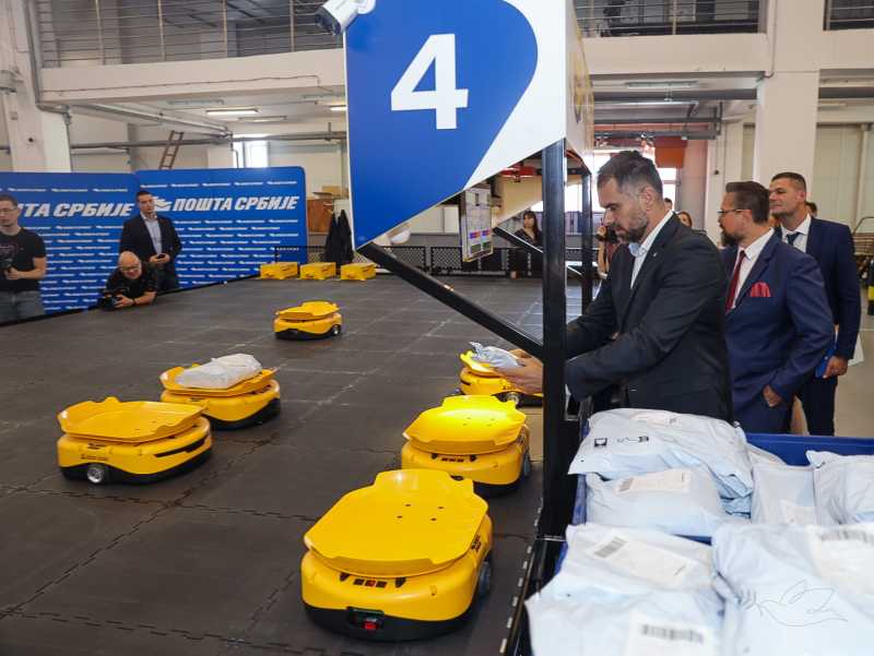 Градоначелник Новог Сада Жарко Мићин и в.д. директора ЈП „Пошта Србије” Зоран Анђелковић присуствовали су пуштању у рад роботизованог система за аутоматизовано сортирање пошиљака у Поштанско-логистичком центру Нови Сад. Како се том приликом могло чути систем ће значајно унапредити квалитет прераде пошиљака, услове рада, као и квалитет пружања услуга корисницима, у смислу повећања поузданости, брзине преноса и скраћења рокова уручења. Роботска платформа у Новом Саду броји 43 робота са 78 излаза за сортирање на различитим рејонима. Капацитет прераде је 2.500 пошиљака по сату и то до нивоа рејона сваког појединачног достављача у свим доставним поштама на подручју Радне јединице Нови Сад, а омогућиће и расподелу за друге радне јединице на територији Војводине.