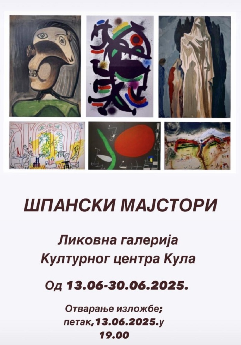 У петак, 13. јуна, у Кули ће бити свечано отворен 66. Републички фестивал аматерских позоришта Србије. Отварању фестивала претходиће отварање изложбе под називом ,,Шпански мајстори“ у Ликовној галерији, која је заказана за 19 часова.