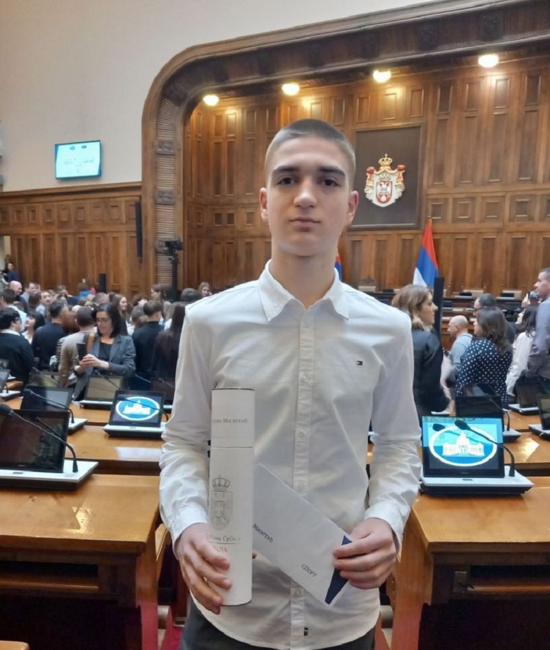 Поводом овог изузетног успеха, Влада Републике Србије и Министарство просвете упутили су честитке Војину, његовим родитељима и његовој школи, а свечана додела плакета и награда одржана је јуче у Народној скупштини Републике Србије у Београду.