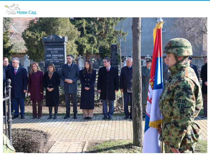 Церемонији полагања венаца и одавања државних и војних почасти у организацији Одбора Владе Републике Србије за неговање традиција ослободилачких ратова Србије, у сарадњи са Покрајинском владом, Градом Новим Садом и Фондацијом „Светозар Милетић“ присуствовали су и положили венце потпредседник Народне скупштине Републике Србије Јован Јањић, министарка за рад, запошљавање, борачка и социјална питања, председница Владиног Одбора за неговање традиција ослободилачких ратова Србије Милица Ђурђевић Стаменковски, председница Покрајинске владе Маја Гојковић, посланик Скупштине АП Војводине Роберт Фазекаш, начелник Јужнобачког управног округа Милан Новаковић, као и представници Министарства одбране, Војске Србије, Министарства унутрашњих послова и представници Фондације „Светозар Милетић“. Помен су служили свештеници Српске православне цркве, а државну химну Републике Србије извео је мушки камерни хор Српског народног позоришта.