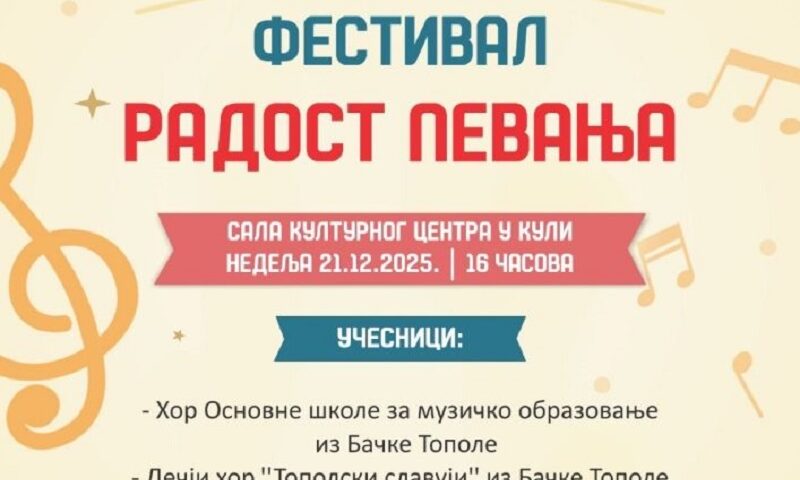 Прочитај више ФЕСТИВАЛ ,,РАДОСТ ПЕВАЊА“ У НЕДЕЉУ У КУЛИ
